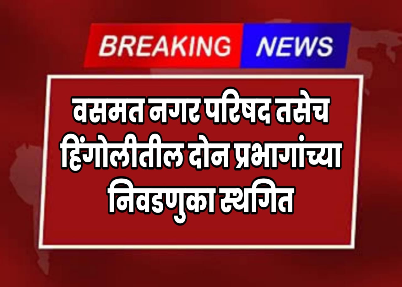 हिंगोली, (जिमाका) दि. ३० : मा. न्यायालय व राज्य निवडणूक आयोग यांच्या निर्देशानुसार वसमत नगर परिषदेची सार्वत्रिक निवडणूक तसेच हिंगोली नगर परिषदेच्या दोन प्रभागांतील निवडणूक प्रक्रिया स्थगित करून नव्याने सुधारित वेळापत्रकानुसार निवडणूक प्रक्रिया राबविण्यात येणार असल्याची माहिती राज्य निवडणूक आयोगाचे सचिव सुरेश काकाणी यांनी प्रसिद्धीपत्रकाव्दारे दिली आहे.