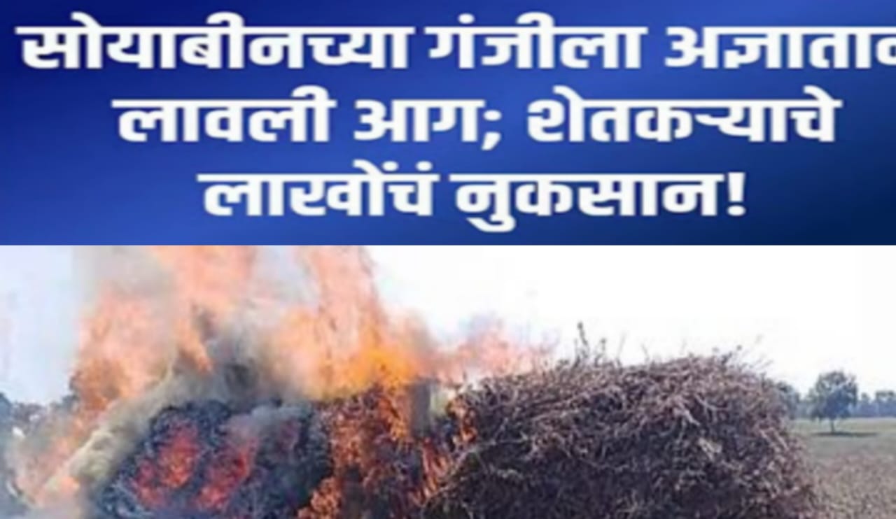 हिंगोली जिल्ह्यातील केंद्रा बु येथे दोन सोयाबीन गंजीला भीषण आग 5ते6 लाखाचे नुकसान